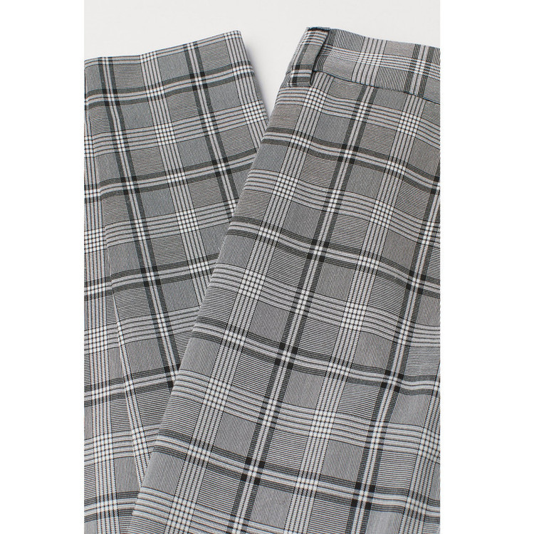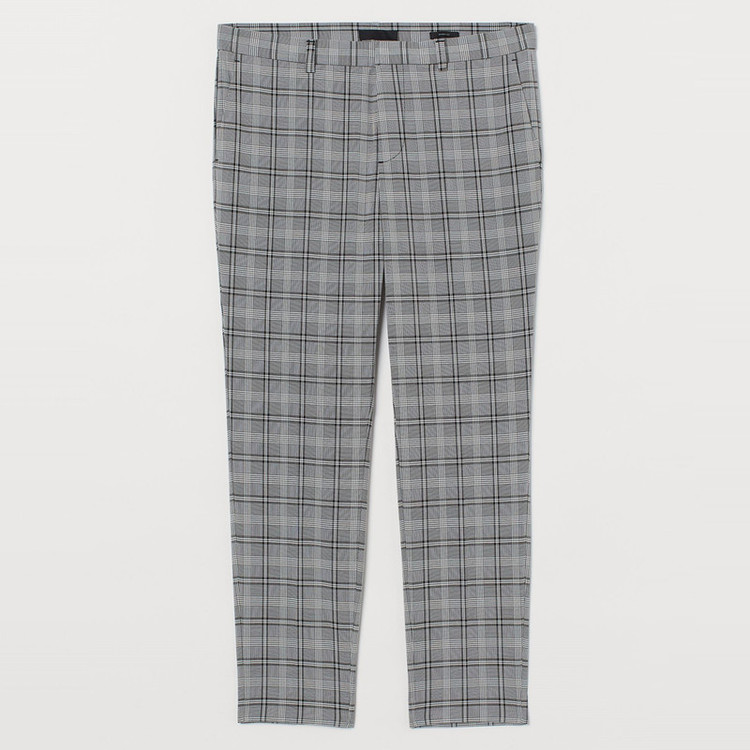 شلوار پارچه ای مردانه قد تا مچ پا از پارچه بافته شده با بست مخفی قلاب و زیپ. دارای جیب های کناری و جیب های پشتی با دکمه تناسب با پاهای کمی کوتاهتر که به رانها، زانوها و مچ پا نزدیک میشود تا یک استایل کاملاً متناسب ایجاد کند.