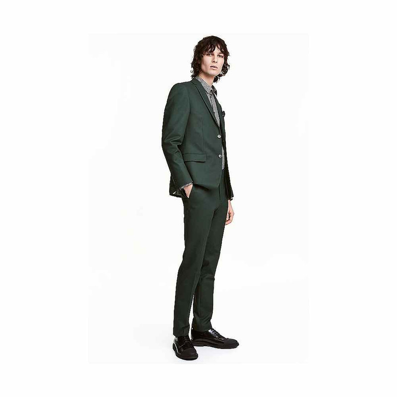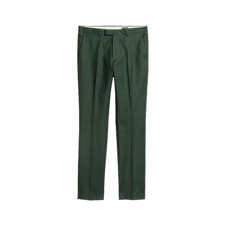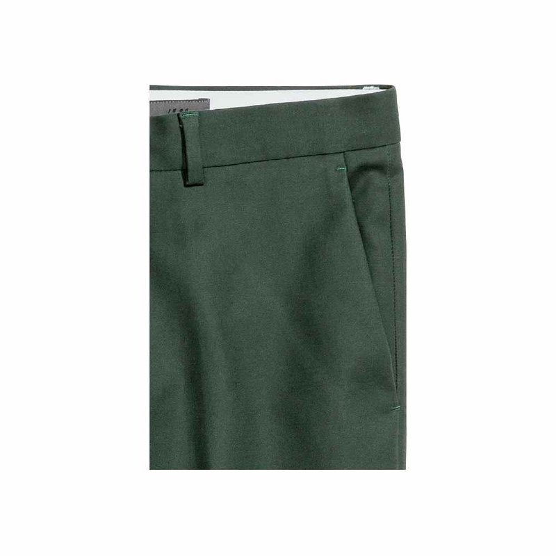 شلوار کت و شلواری با بافت پنبه ای کمی کشدار. دارای زیپ فلای و یک دکمه. دارای جیب های جانبی در درزهای کناری.