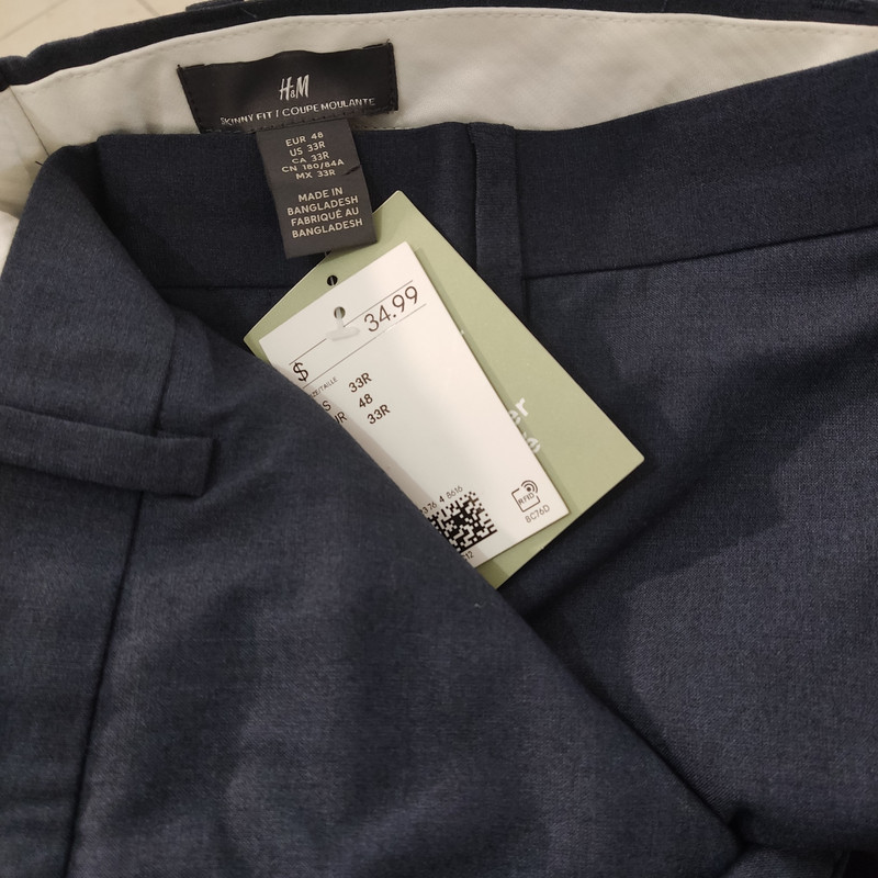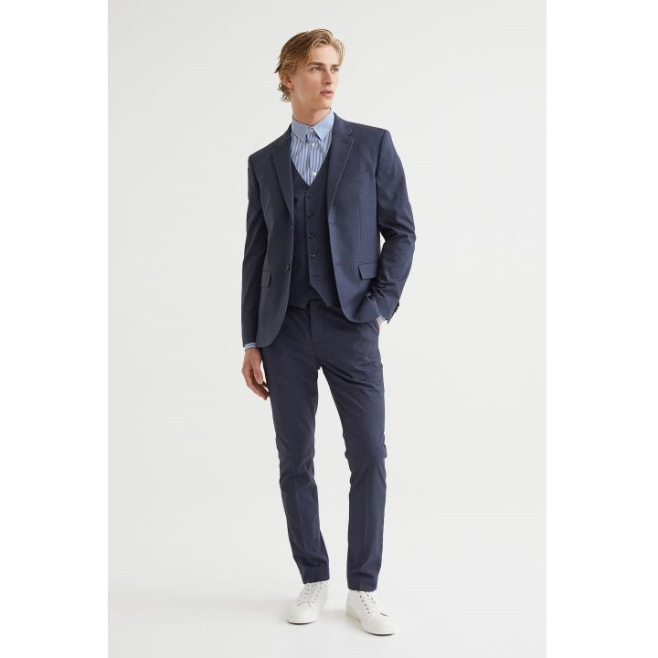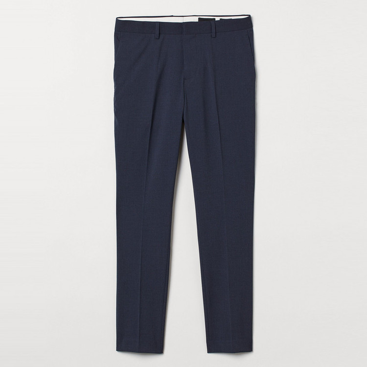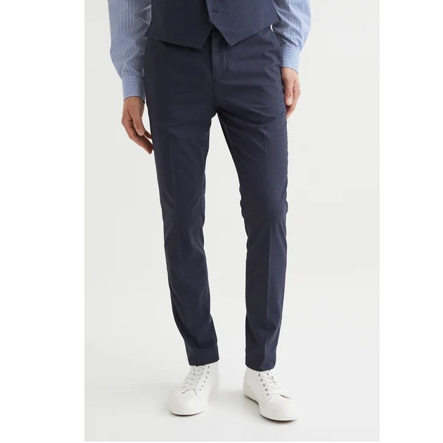 شلوار پارچه ای مردانه اسکینی فیت در یک بافت کشی با قلاب و دکمه پنهان و زیپ بسته میشود . جیب های پشتی