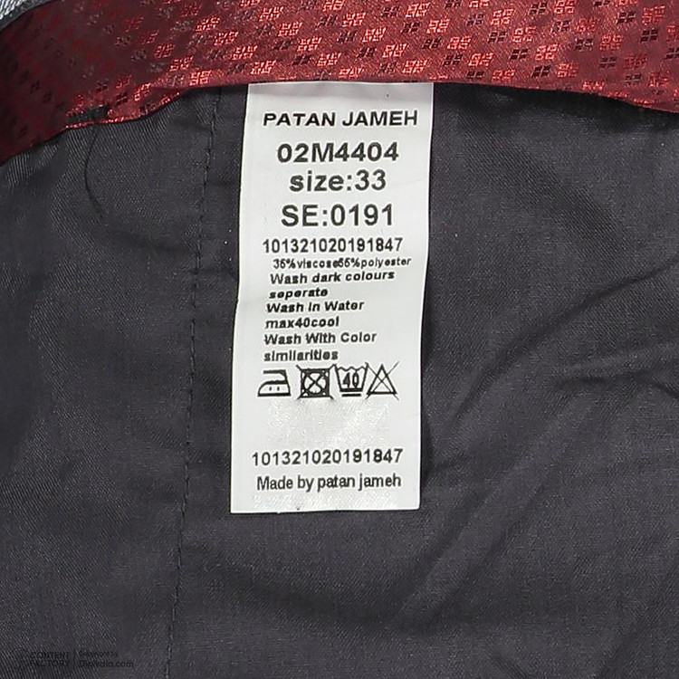شلوار فاستونی (پارچه ای) / ضخامت متوسط / زیر دست بسیار لطیف / مناسب استفاده روزمره ، اداری و رسمی / طرح جودون ریز رنگ خاکستری تیره