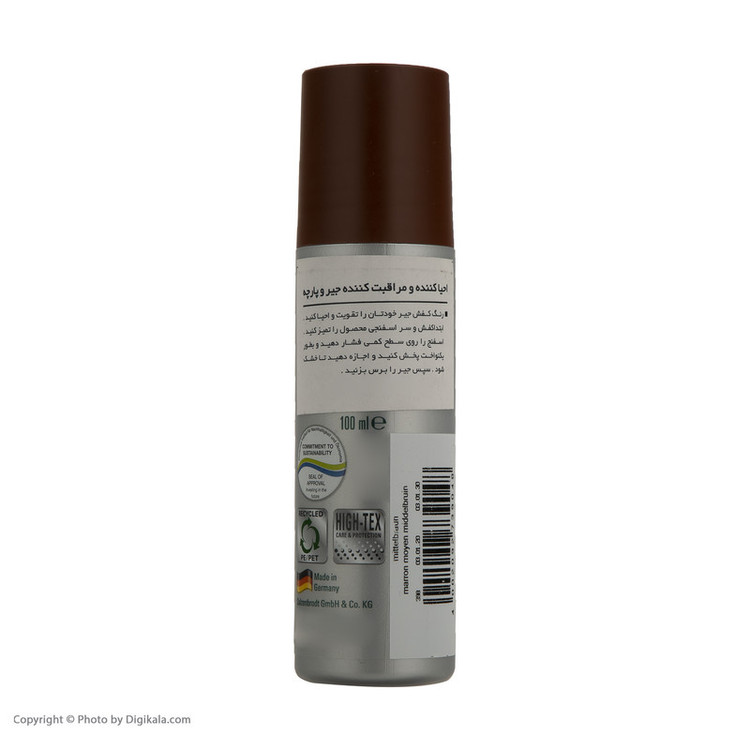 روش استفاده: ابتدا گرد و خاک کفش را بگیرید و سپس سر اسفنجی اسپری تمیز کننده کفش جیر را به ميزان کم روی سطح فشار دهید تا مایعِ واکس از آن خارج شود. در ادامه واکس را بطور یکنواخت روی سطح پخش کنید و اجازه دهید تا خشک شود و بعد آن را با برس مخصوص جیر پولیش کنید.