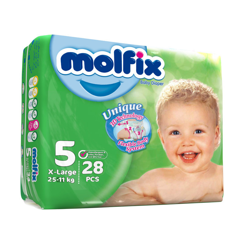 پوشک کودک مولفیکس مدل xlarge سایز 5 دو بسته 28 عددی