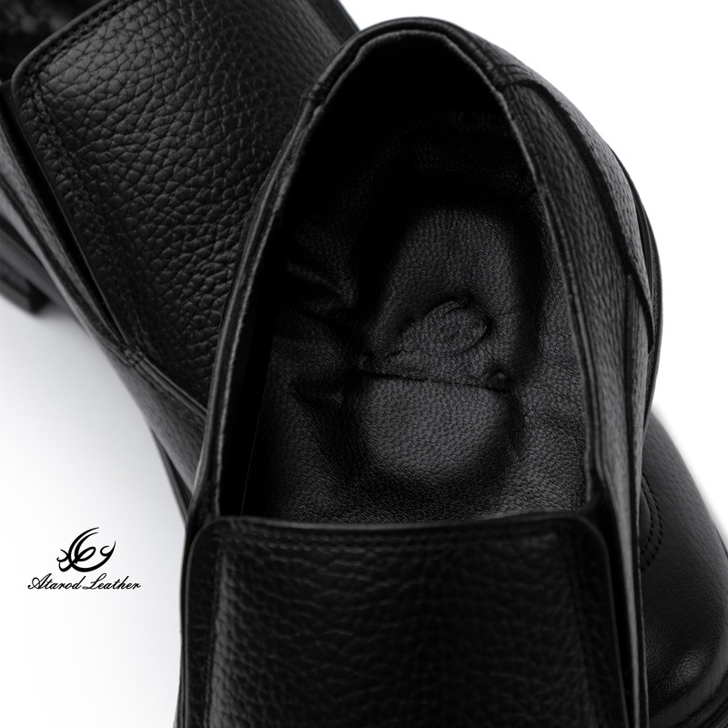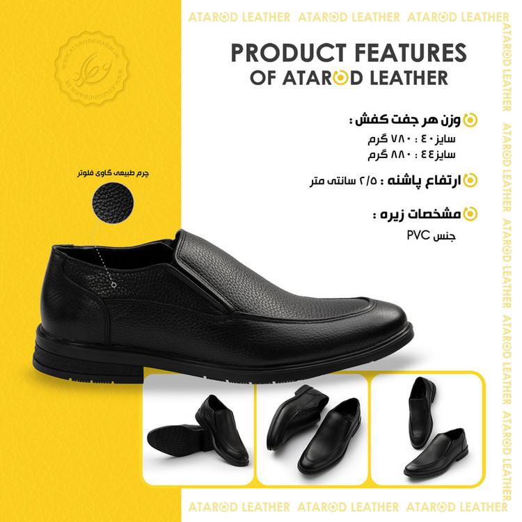 رویه صدرصد چرم طبیعی گاوی فلوتر برند چرم عطارد آستر داخل چرم طبیعی بزی یک لایه کتان در زیر پنجه برای تنفس پا و جلوگیری از عرق لطفا در هنگام ثبت سفارش حتما به اندازه و علائم در عکس چارت سایز بندی دقت نمایید