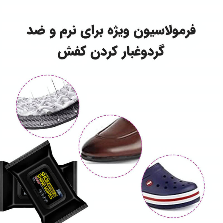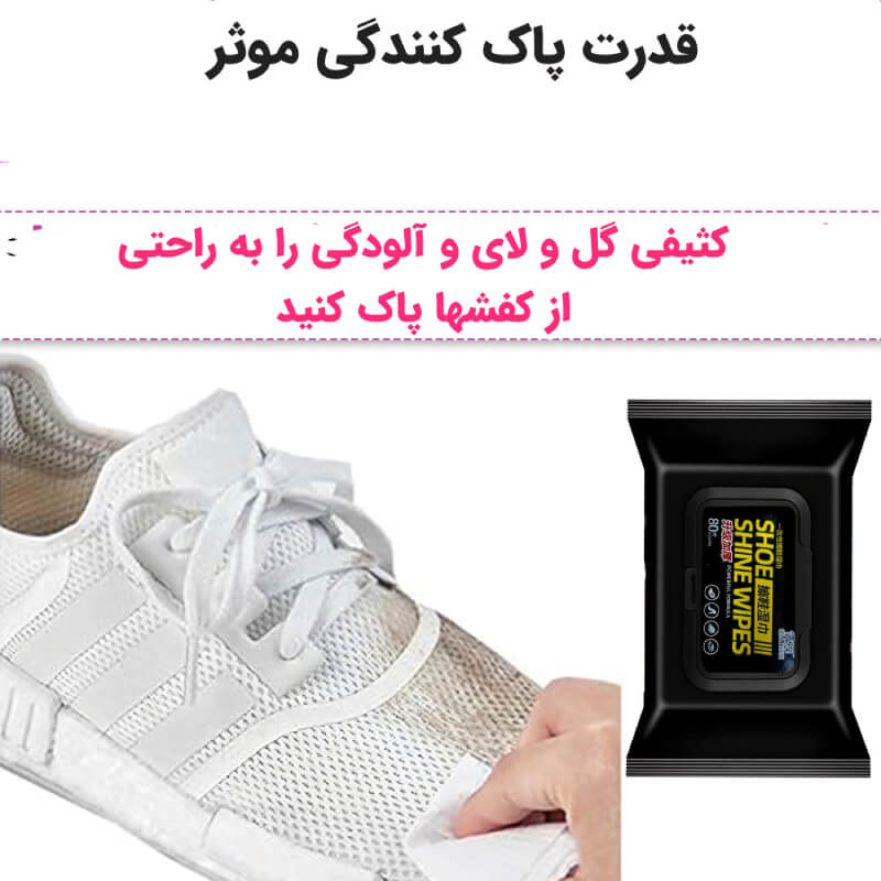 کافی است یک عدد از دستمال مرطوب کننده کفش به روی کفش خود بکشید تا کفش شما به سادگی تمیز شود