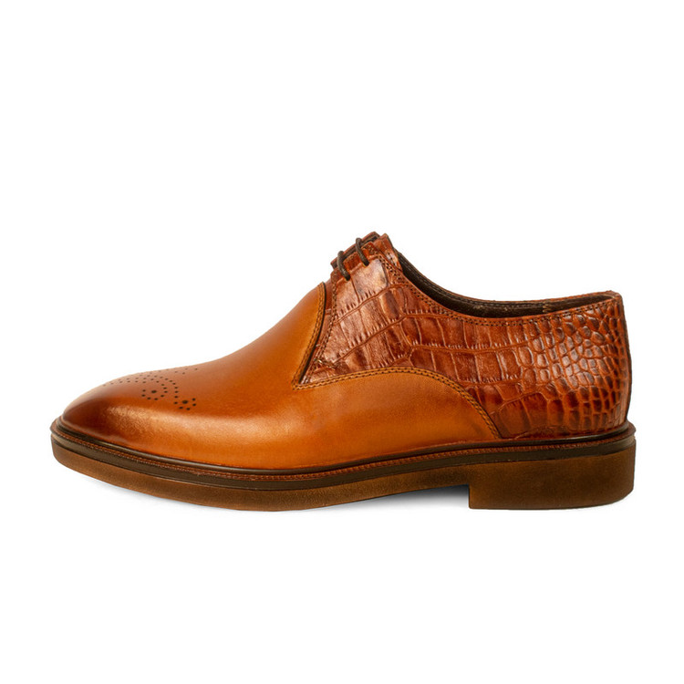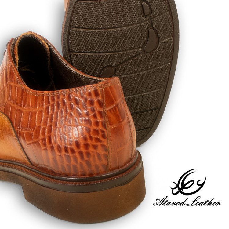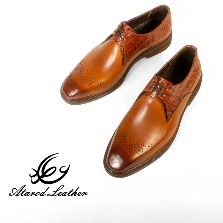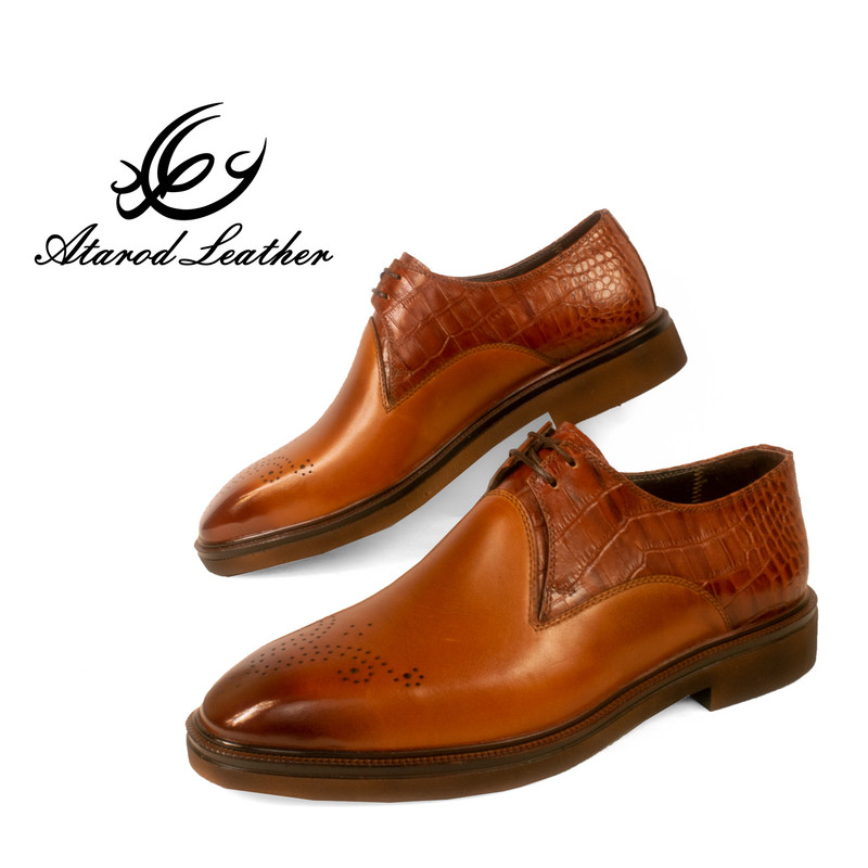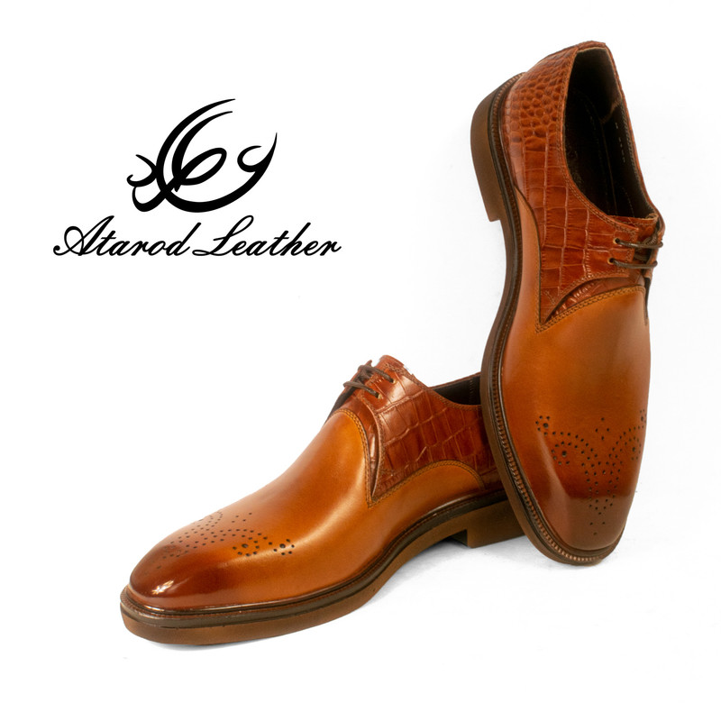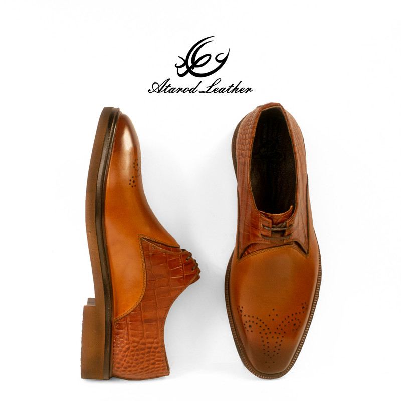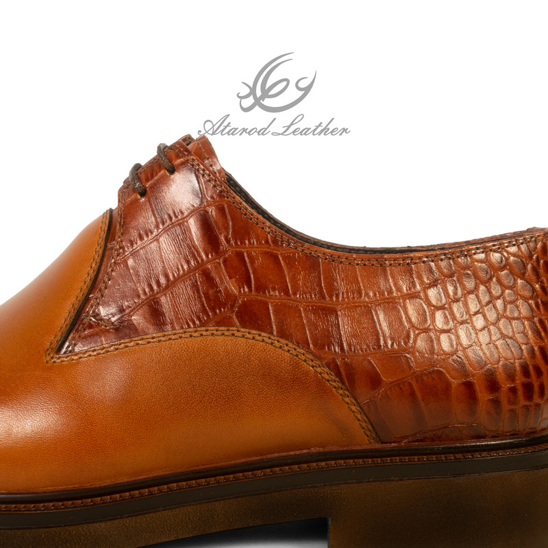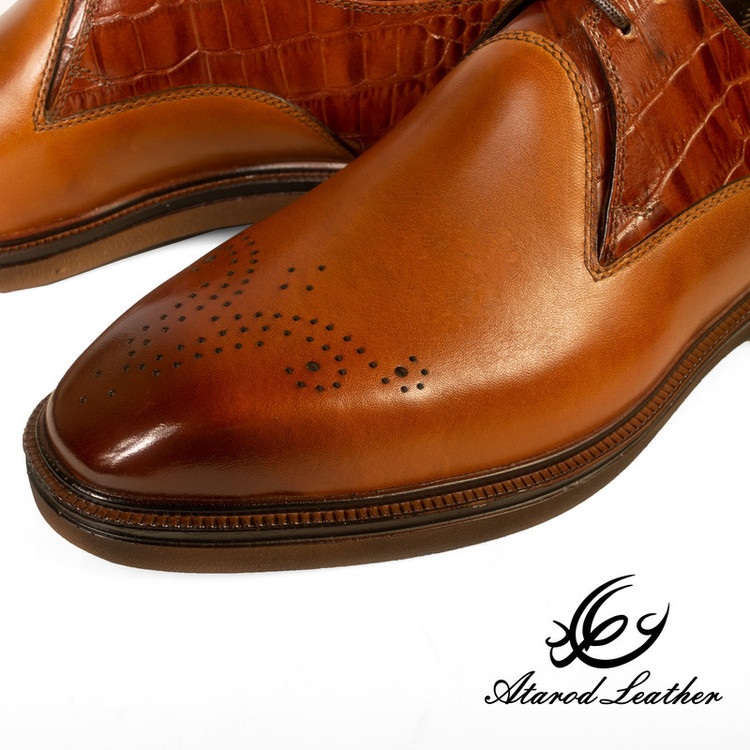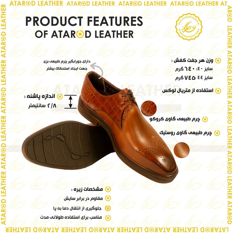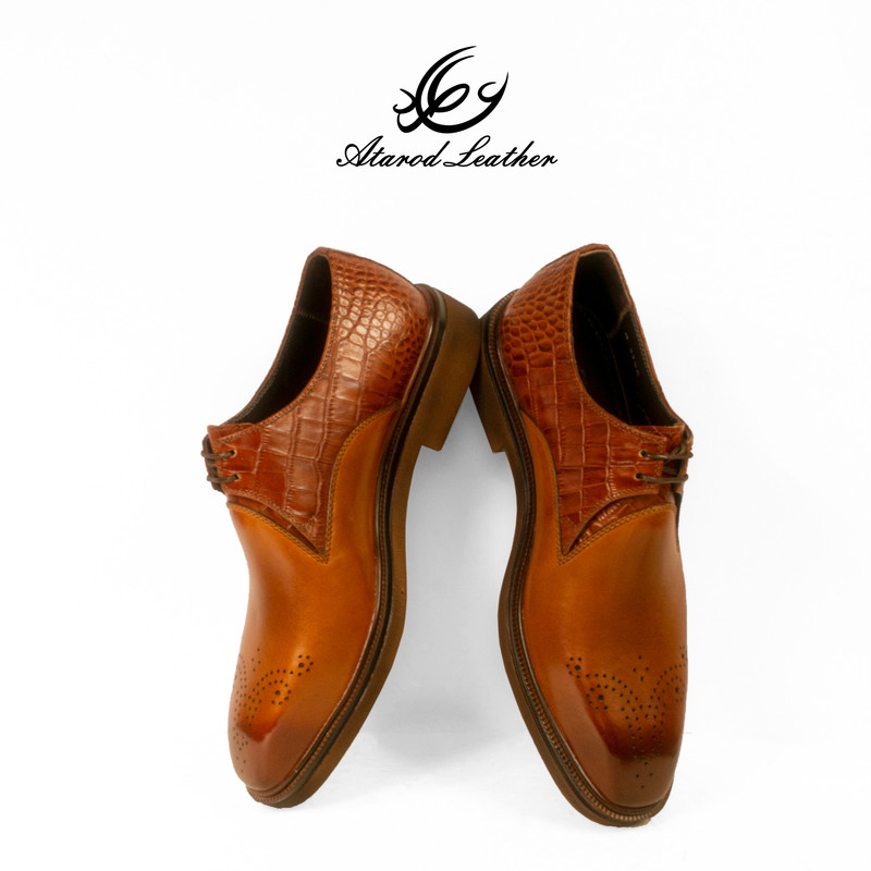 رویه کفش ترکیب چرم طبیعی لوکس گاوی روستیک و کروکو برند ثبت شده عطارد آستر داخل کفش چرم طبیعی بزی لوکس کفی تمام چرم طبیعی بزی لوکس از سری کفش های ژورنالی برند چرم عطارد دارای بسته بندی اختصاصی مناسب برای هدیه