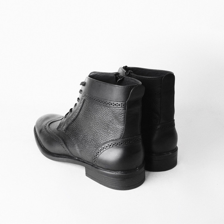 جزئیات: نیم بوت مارتین هم از بغل زیپی است و هم بند دارد