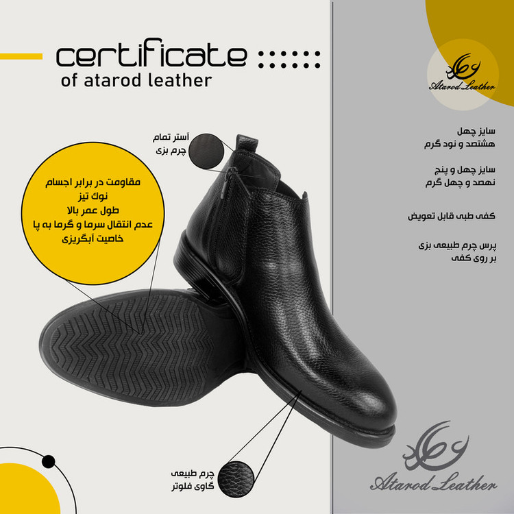 نیم بوت مردانه چرم عطارد مدل چرم طبیعی کد SH107