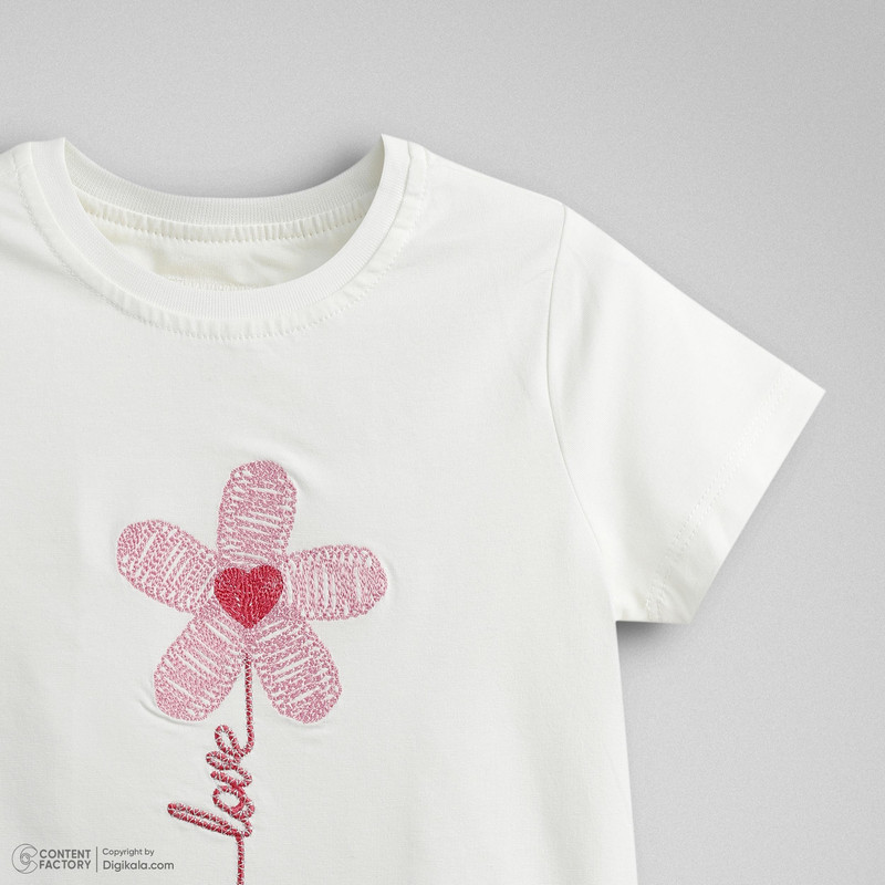 ست تی‌شرت آستین کوتاه و شلوارک راحتی دخترانه وان بای وان مدل بابونه