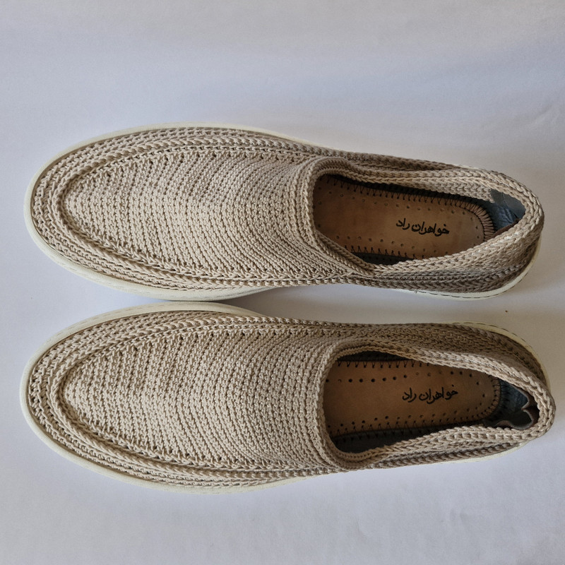 جزئیات: اجرای طرحهای هایلایت رنگ آمیزی با دست انجام میشود رنگها ثابت و قابل شستشو میباشد.بافت رویه دستباف و توسط زنان سرپرست خانوار انجام میشود.هایلایت نسکافه ایی رنگ ترند است و خیلی راحت با همه رنگ لباسی ست میشود .گیوه را در فصل گرما میتوانید بدون جوراب بپوشید