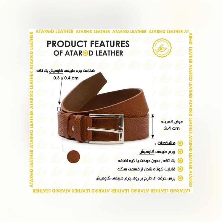 کمربند مردانه چرم عطارد مدل چرم طبیعی گاومیش کد B42