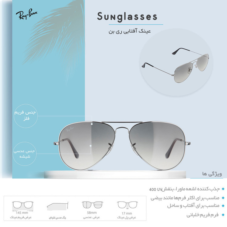 عینک آفتابی خلبانی (Aviator) ری بن مدل 003/32-58