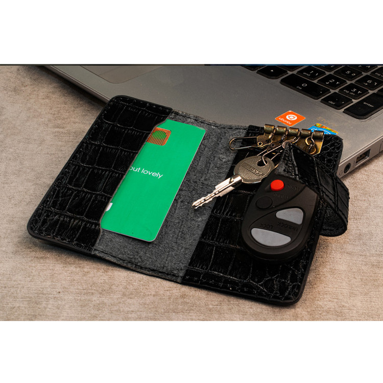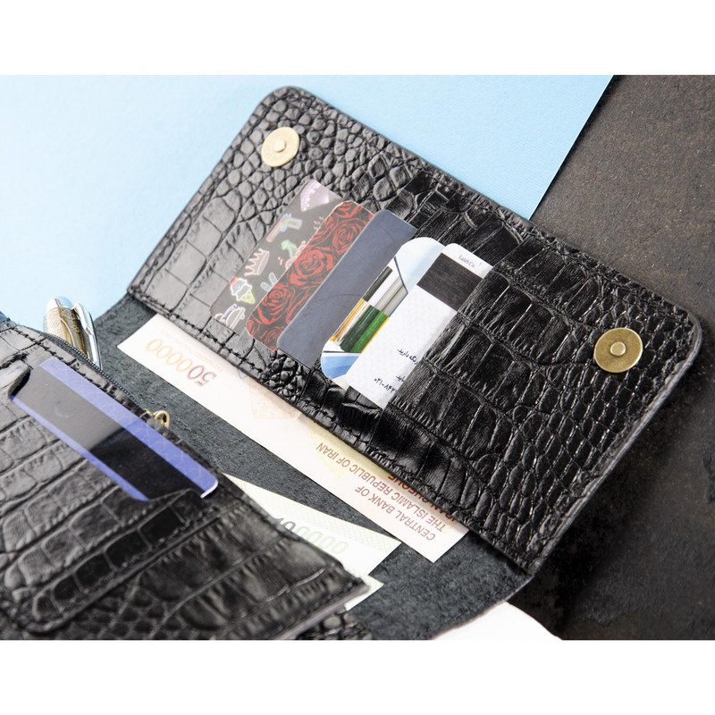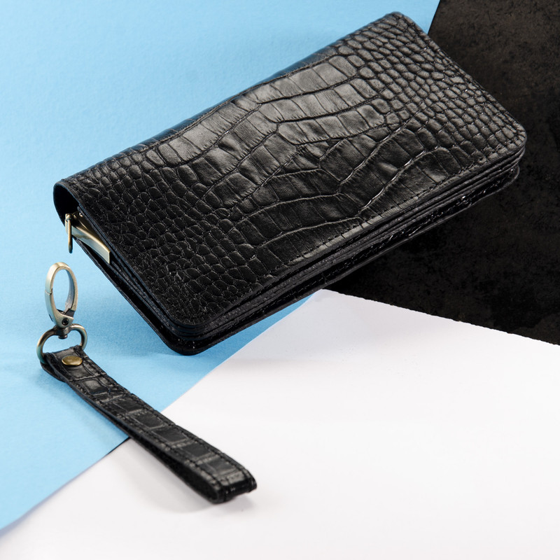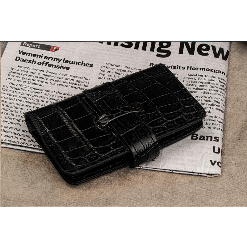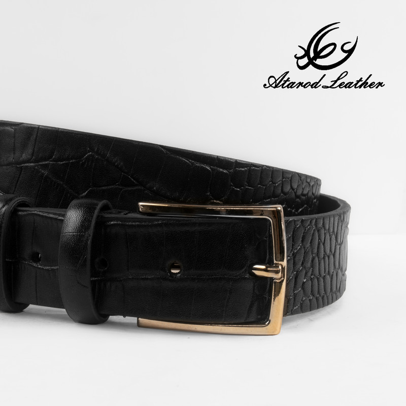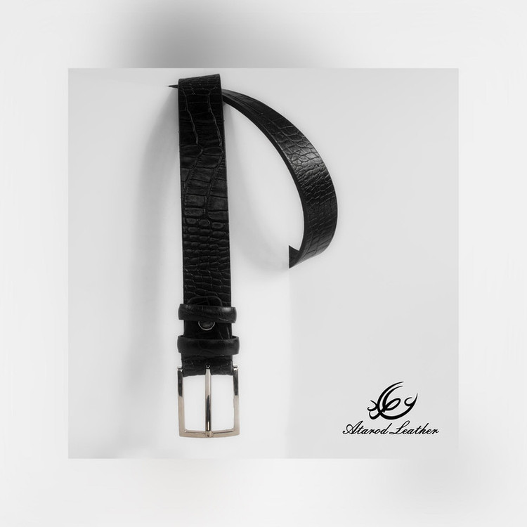 ست هدیه 3 تکه شامل کمربند (چرم طبیعی گاومیش طرح کروکودیل) ، کیف پول دستی و جاکلیدی آویز (چرم طبیعی گاوی طرح کروکودیل)
