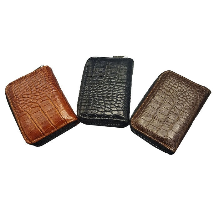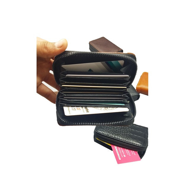 چرم طبیعی دارای نه محفظه نگهداری کارت دارای زیپ