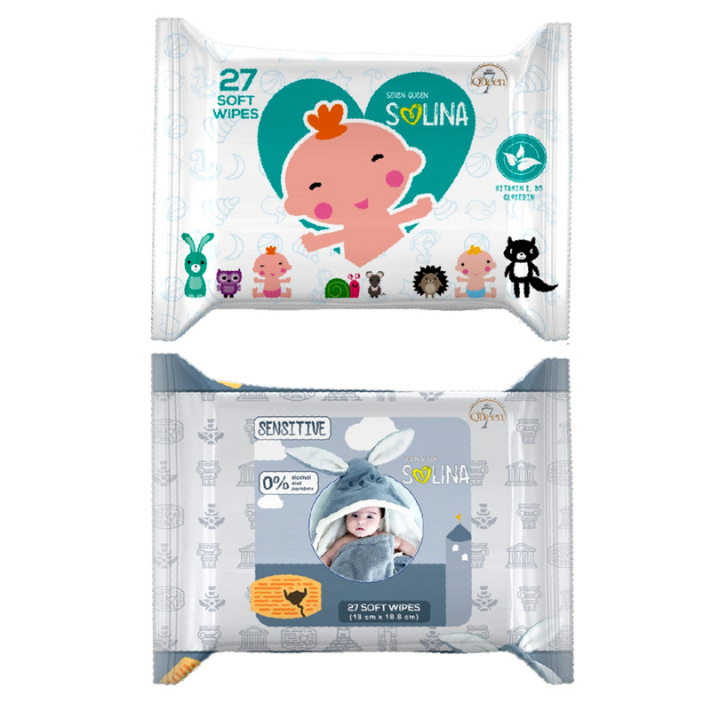 دستمال مرطوب کودک سون کویین مدل سولینا دو بسته 27 عددی