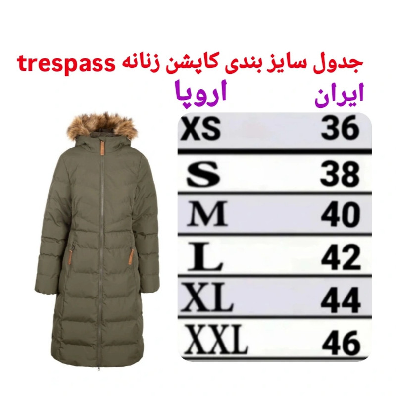 کاپشن زنانه ترسپس، از جنس پلی‌استر با طرح ساده و تنخوری معمولی، مدل Tr2025