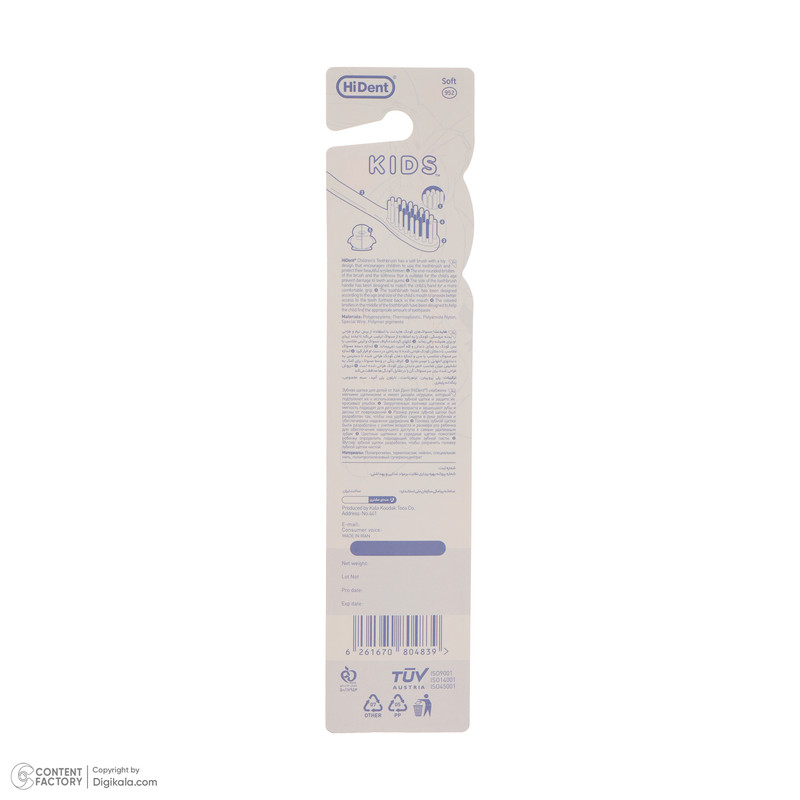 میزان زبری برسنرمویژگی مسواکطراحی عروسکیویژگیهای محصول بهداشتیدرپوششماره مجوزصادرکننده مجوزسازمان غذا و دارورنگچند رنگ