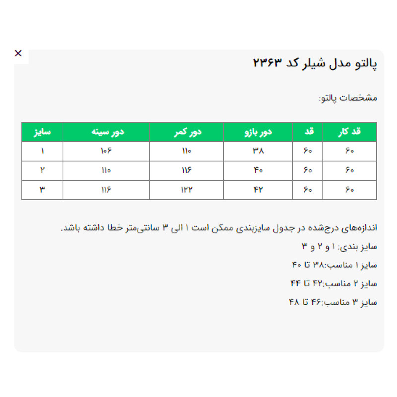 نوع پالتو زنانه