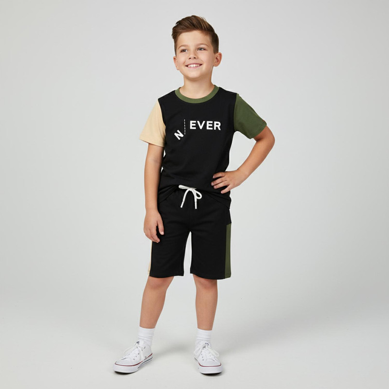 جنسنخطرحچاپقدروی باسنتنخور لباسمعمولی (regular fit)نوع آستینآستین کوتاهمدل یقهگردنوع ست لباس راحتی پسرانهتیشرت و شلوارک