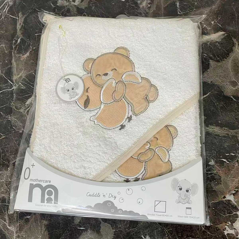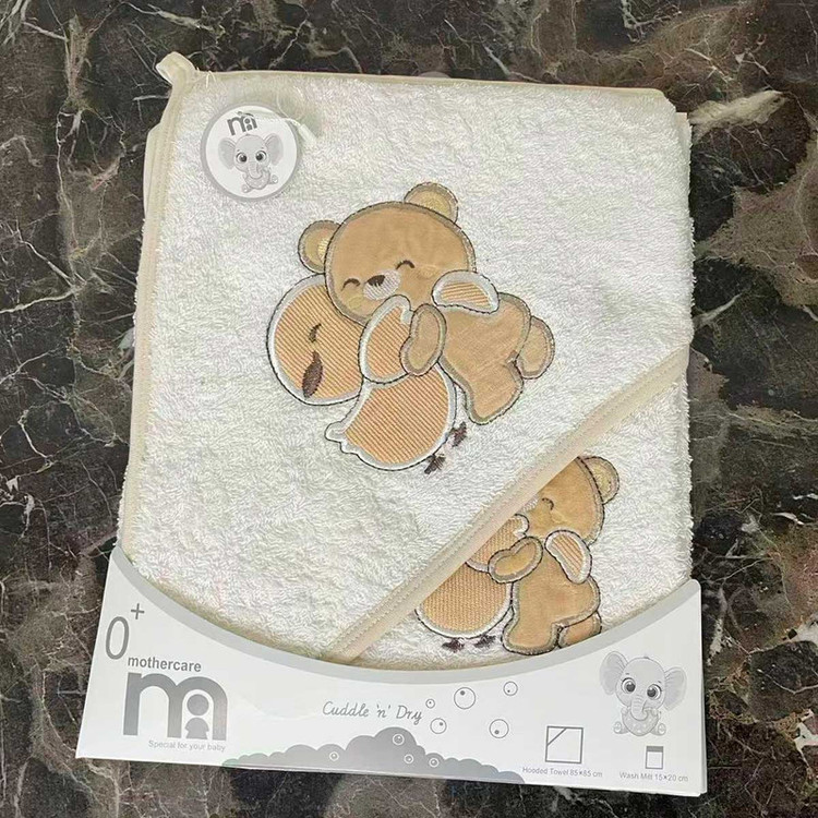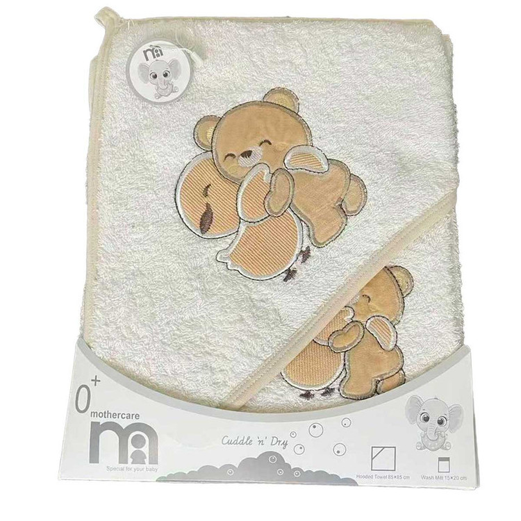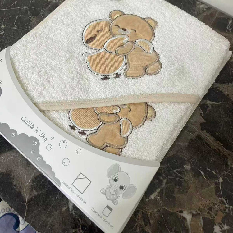 ست حوله نوزادی مادرکر طرح گلدوزی مدل Bear and chick hugging به همراه لیف