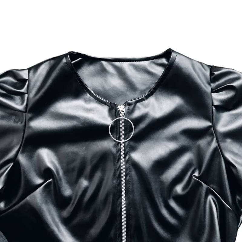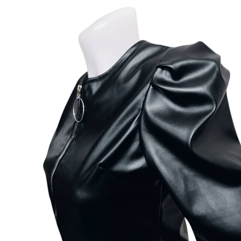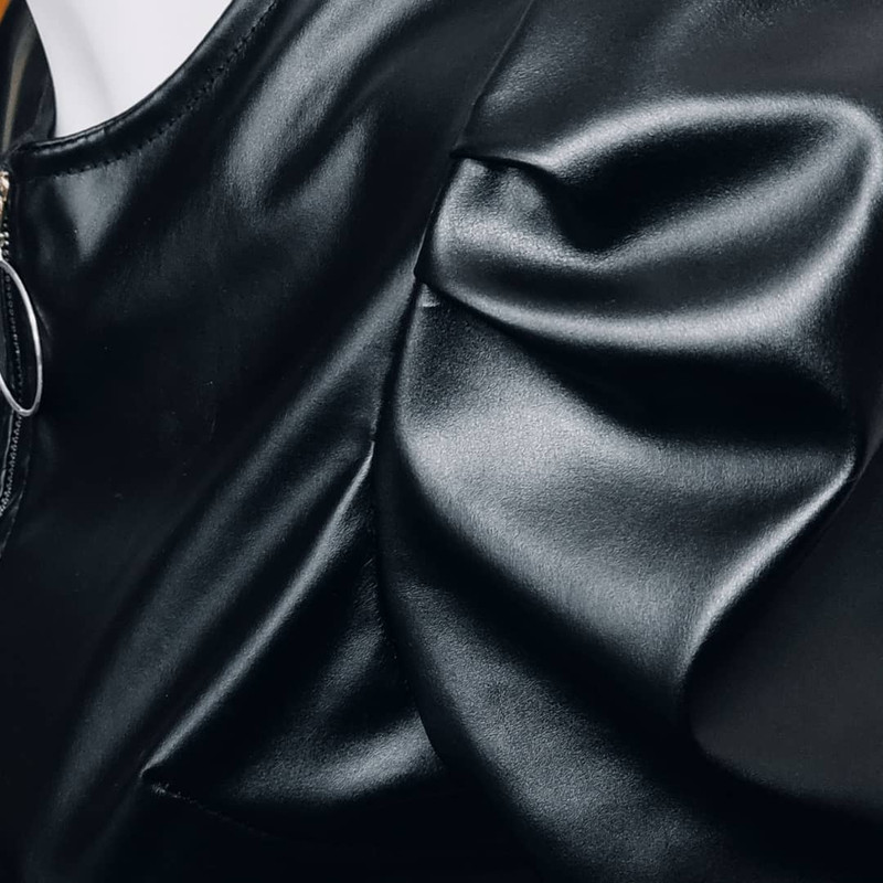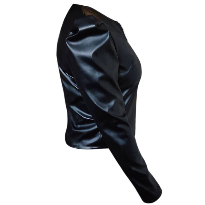 کراپ فوق آستین بلند است و از جنس چرم مصنوعی و پلی آمید می باشد که کاملا مشابه چرم است ولی با قیمتی بسیار مناسب تر نسبت به چرم در اختیار شما قرار میگیرد.قد کراپ از سر شانه تا پایین 48 سانتی متر است و عرض کمر آن 46 سانتی متر می باشد.که با این ابعاد بازه ی سایزی 34 تا 42 را پوشش می دهد و مناسب بانوان فیت و اندامی می باشد.در قسمت جلو زیپ کار شده است و زیبایی در طراحی سر شانه های این کار باعث خاص شدن دو چندان آن میشود و شما می توانید آن را با تمامی شلوارها و دامن های جین و کتان در رنگ های متفاوت ست کنید.پارچه ی کار در داخل دارای لایه ی نازک کرک جهت راحتی شماست.کاری بسیار مناسب جهت دور همی ها و مهمانی های خانوادگی شما