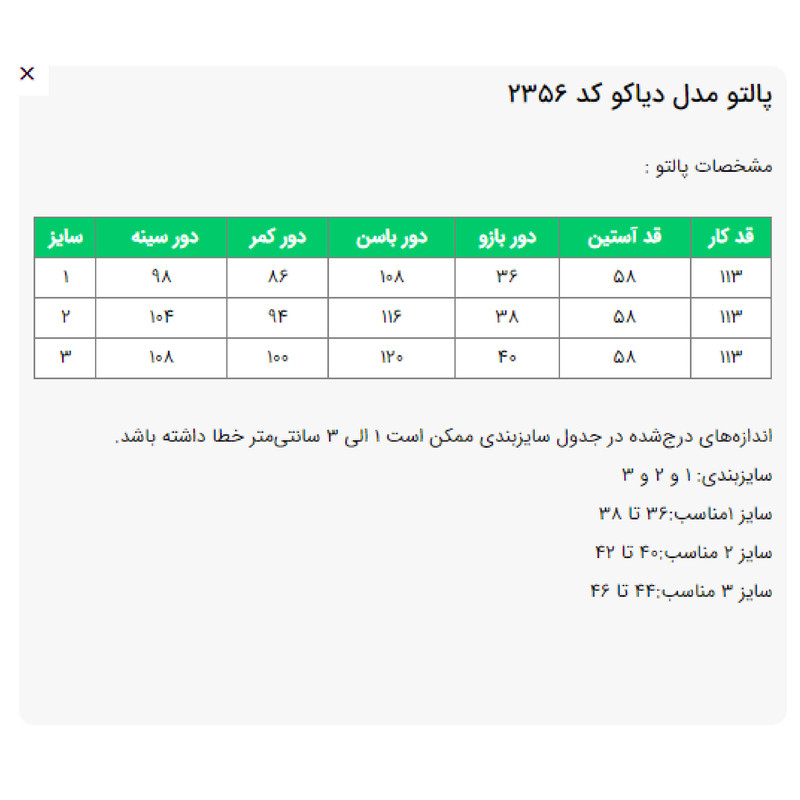 نوع پالتو زنانه