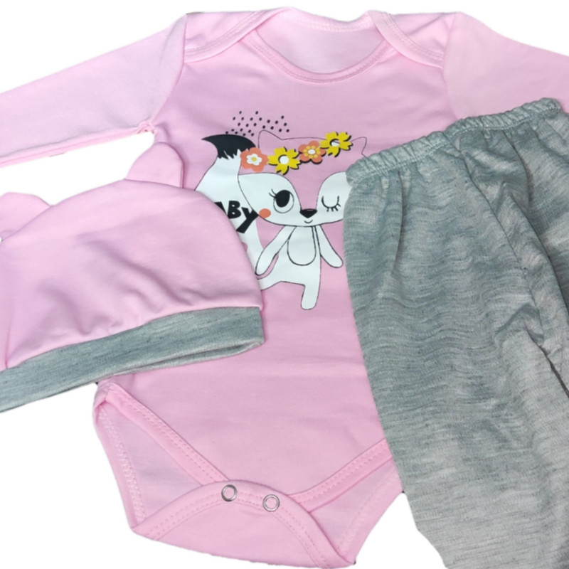 ست 3 تکه لباس نوزادی مدل روباه بازیگوش کد A04
