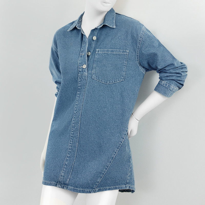 جنسجینطرحسادهقدزیر باسنمدل یقهبرگرداننوع آستینآستین بلندمورد استفادهروزمره , مهمانیتنخور لباسآزادسایزآبی دودی - 38