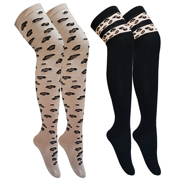 جوراب ساق بلند زنانه تن پوش هنگامه مدل بالا زانو رینگی و پلنگی بسته 2 عددی