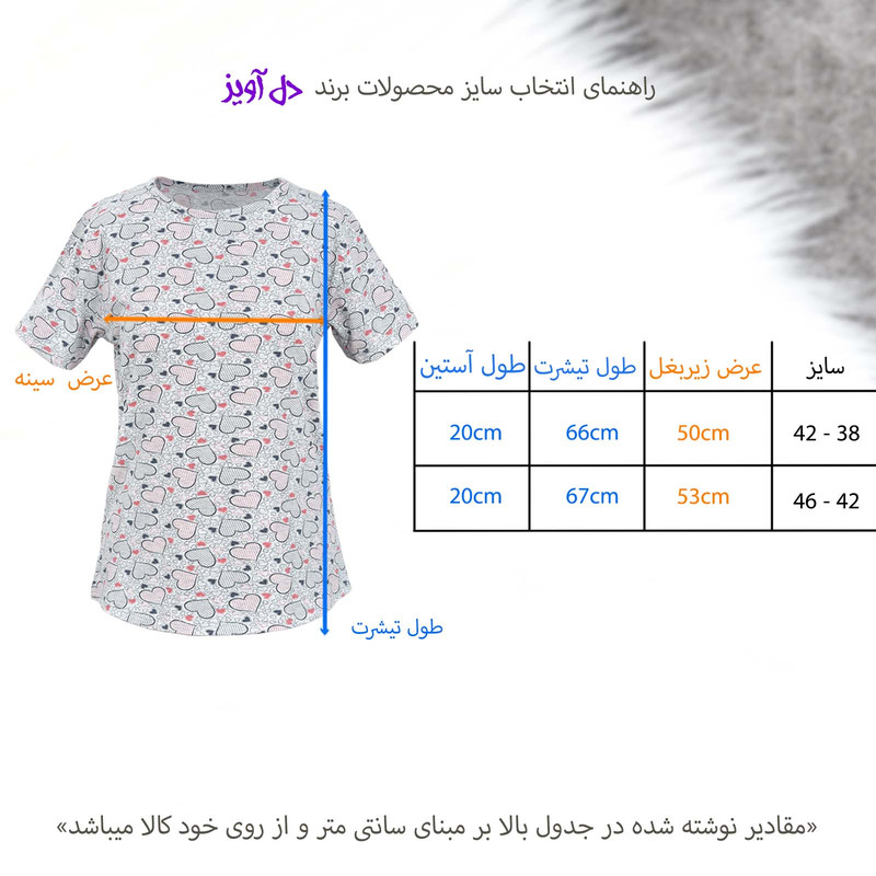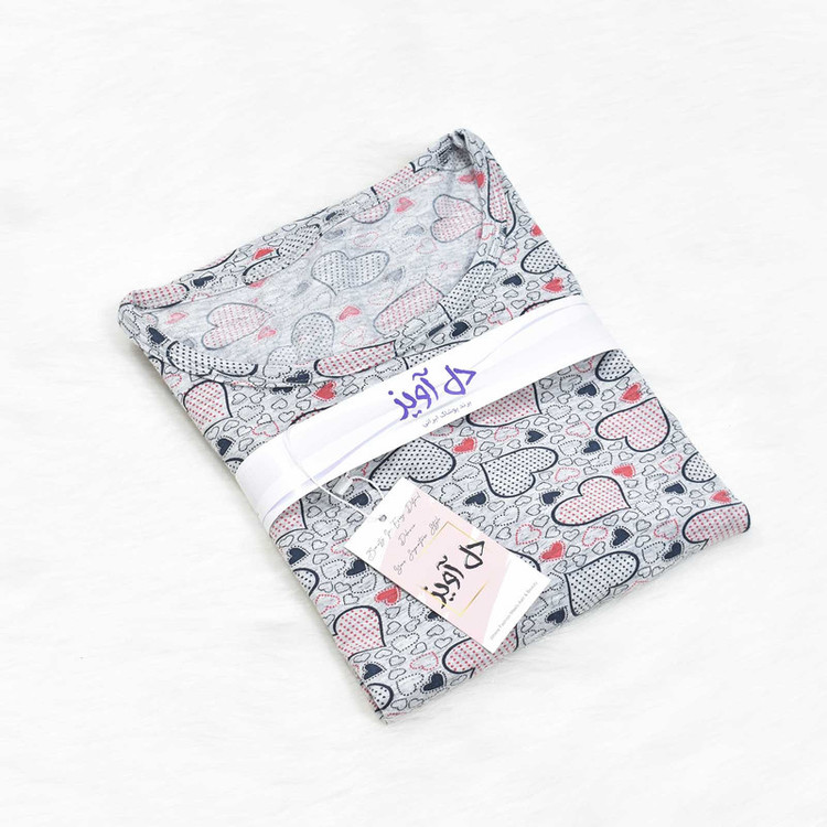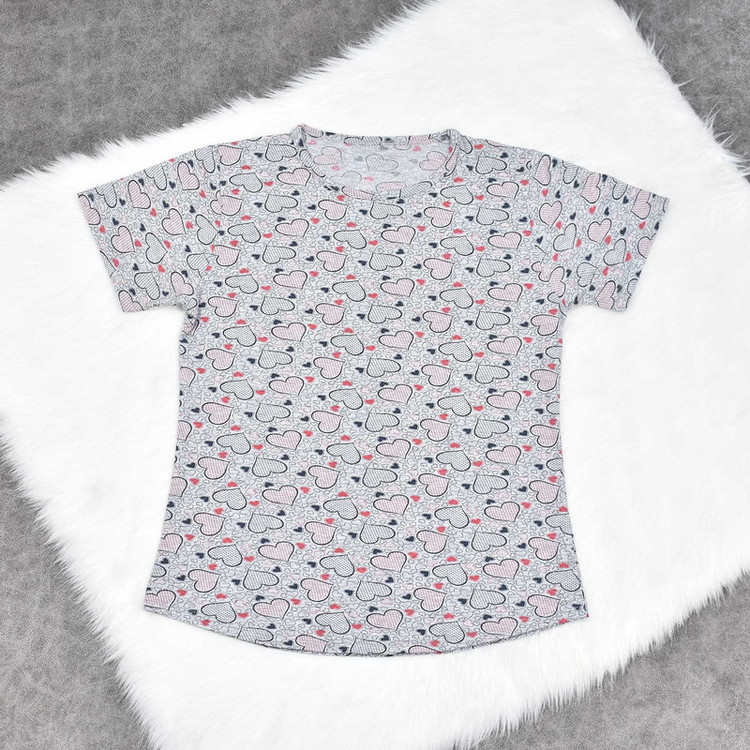 تیشرت آستین کوتاه به رنگ طوسی و با طرح قلب