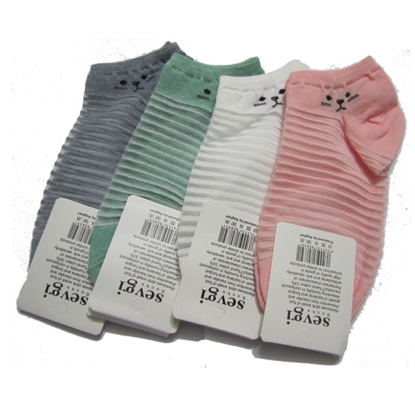 جوراب ساق کوتاه زنانه مدل مچی راه راه L122 بسته 4 عددی