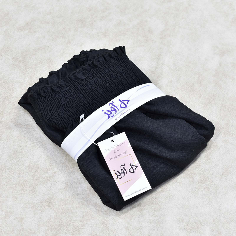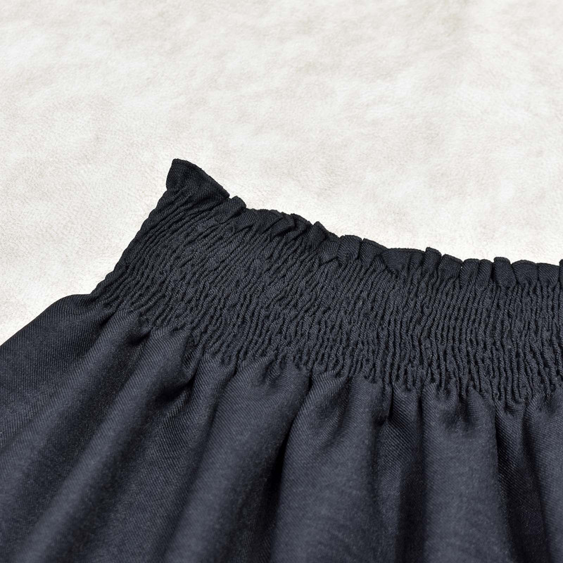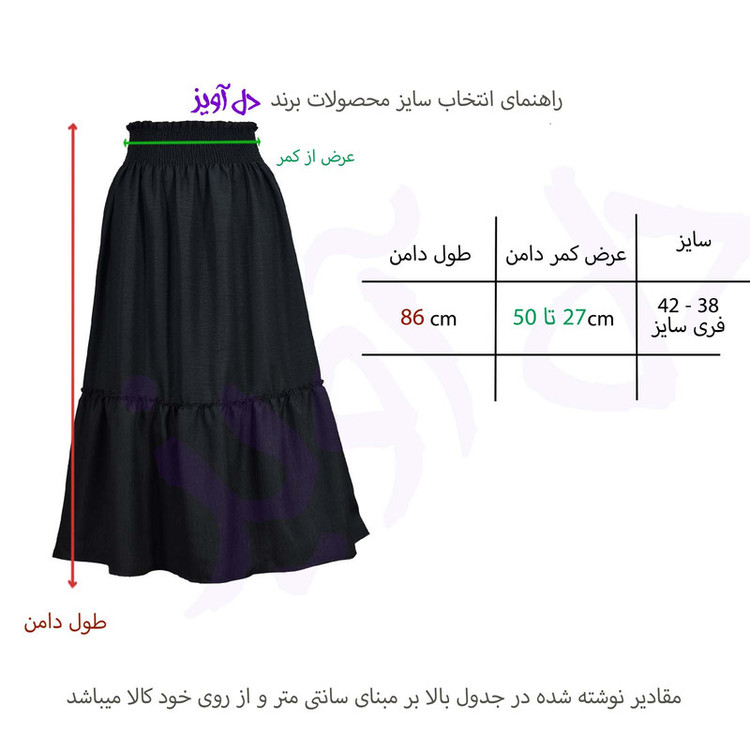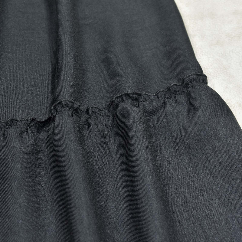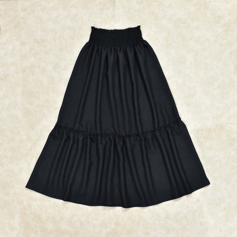 دامن لنین مدل کمر کشدوزی عریض مدل دوطبقه چین دار به رنگ مشکی با طول ۸۶ سانتی متر مناسب سایزهای ۳۸ تا ۴۲