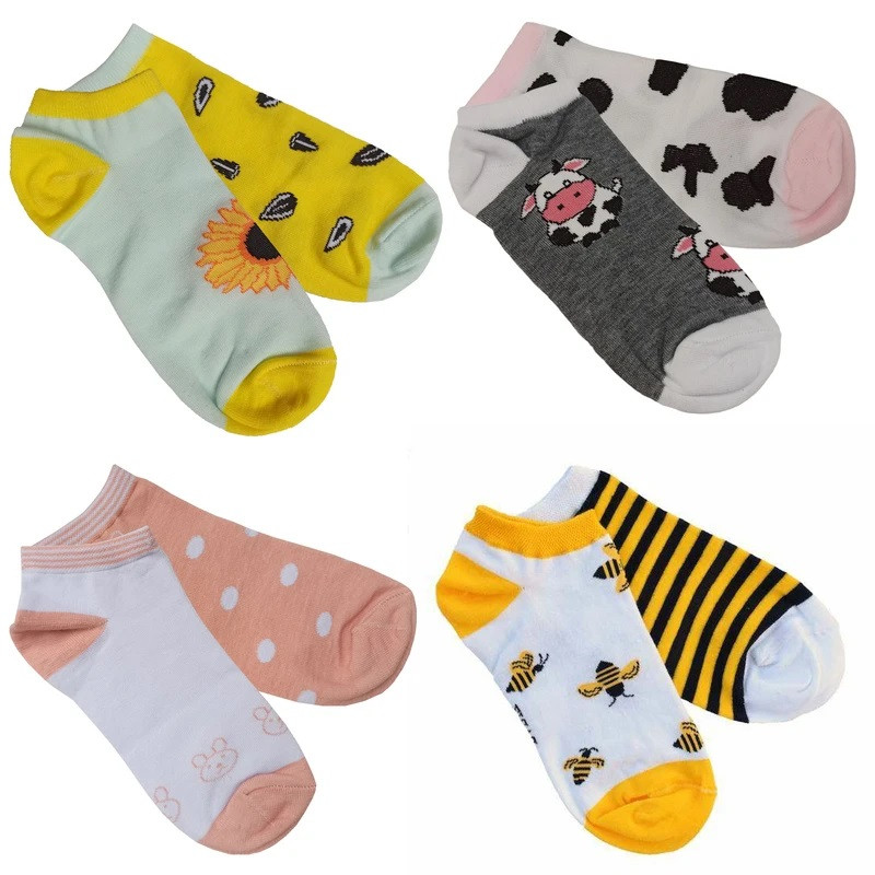 جوراب زنانه مدل تا به تا طرح زنبور و آفتابگردان و گاو و خرس کد 002 بسته 4 عددی