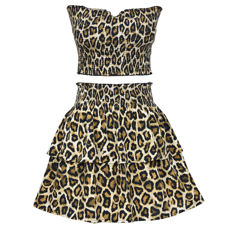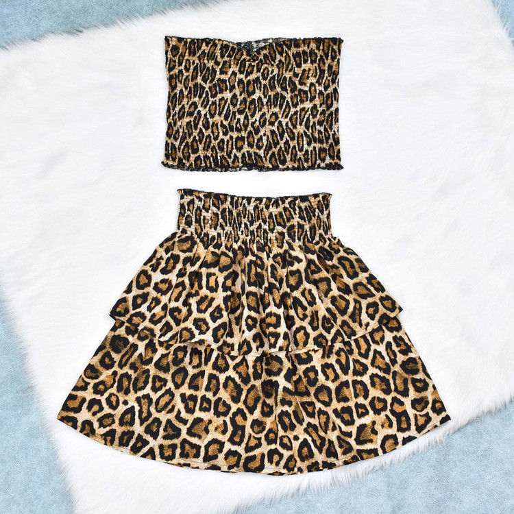 ست نخی نیم تنه کشدوزی و دامن مدل دو طبقه با طرح لئوپارد(پلنگی)