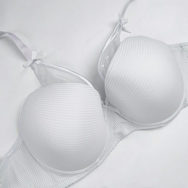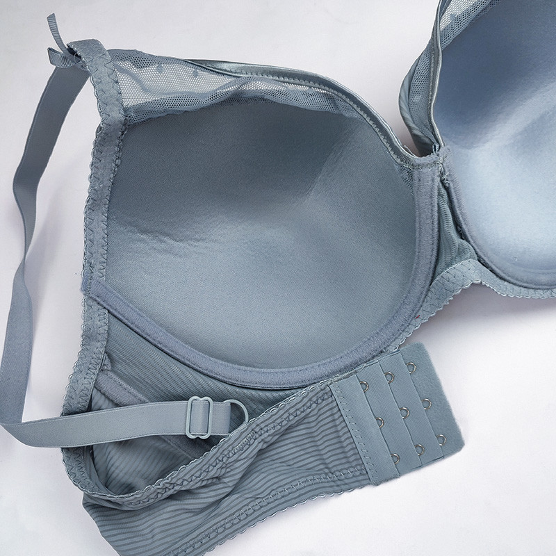 سوتین اسفنجی با بند ساده زنانه مدل لبه تور کاپ D کد 21107