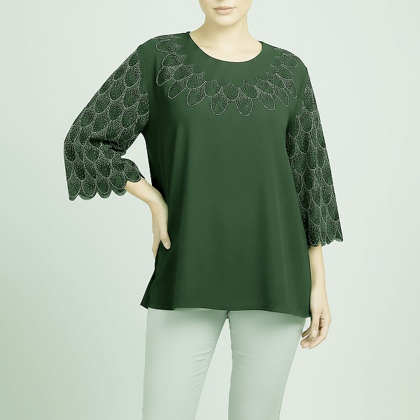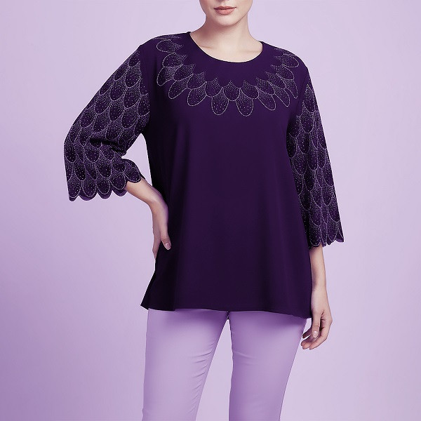 بلوز زنانه سایز بزرگ مجلسی دوخته شده ازپارچه جودون خاویاری دارای نگین بدون ریزش میباشد. آستین این بلوز از پارچه حریر کلفت دوخته شده است . یقه بلوز هم از جنس حریر آستین کارشده است. نگین کار شده جلوی بلوز ، روی آستین هم کار شده و بدون ریزش میباشد.