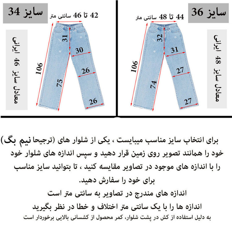شلوار جین نیم‌بگ زنانه دیان مدل N_ROSH