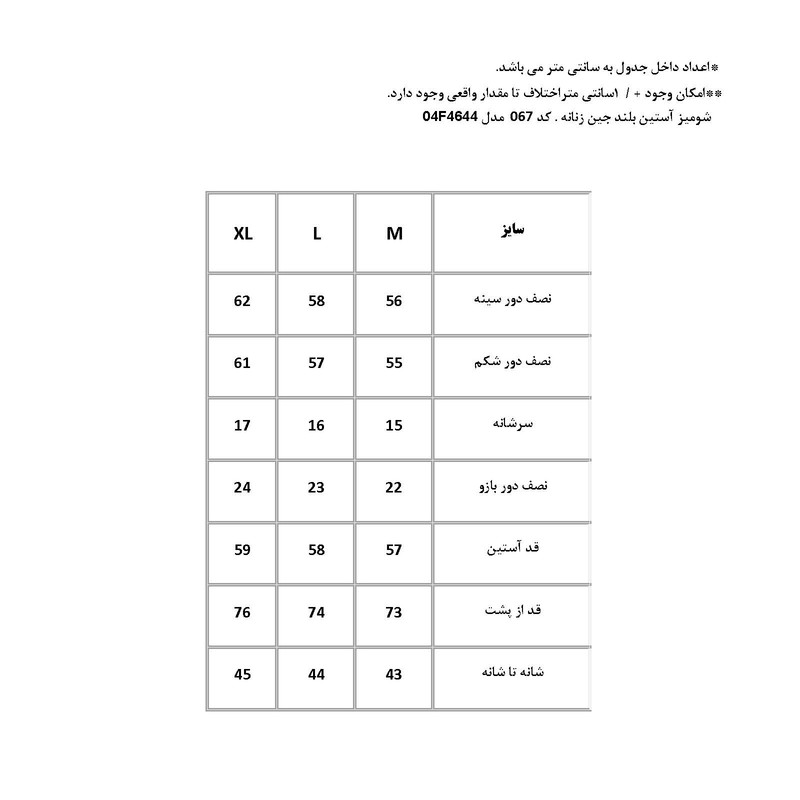 نوع شومیز زنانه: آستین بلند