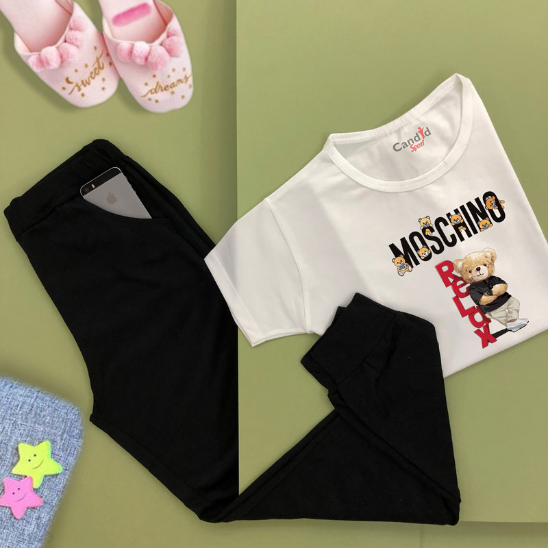 ست تی شرت آستین کوتاه و شلوار زنانه کاندید اسپرت مدل خرس