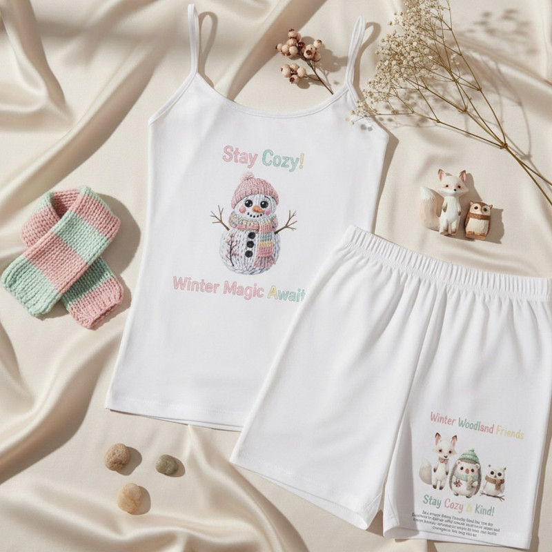 ست تاپ و شلوارک راحتی زنانه مدل آدم برفی
