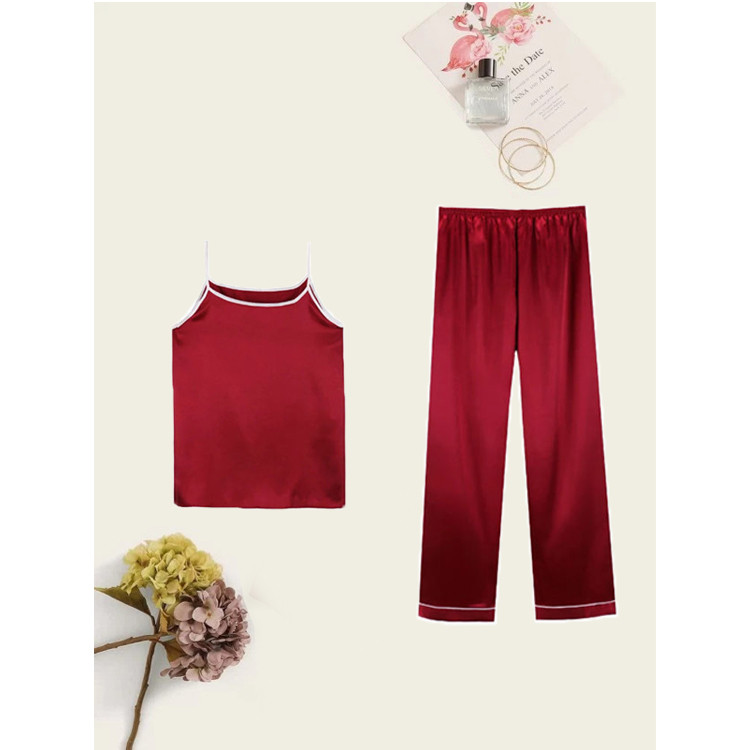 -ست لباس خواب زنانه شامل شلوار قیطون دوزی ساتن