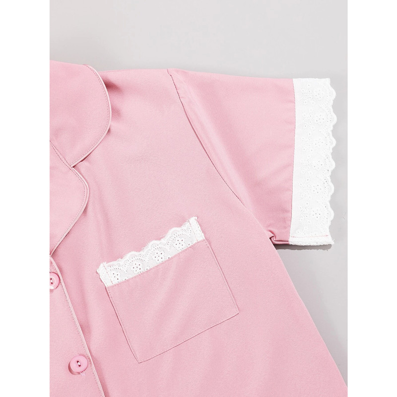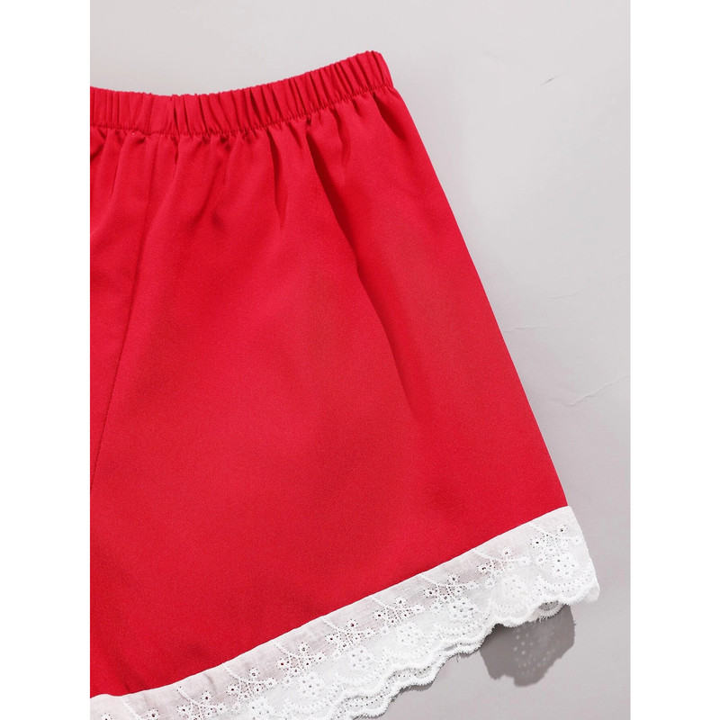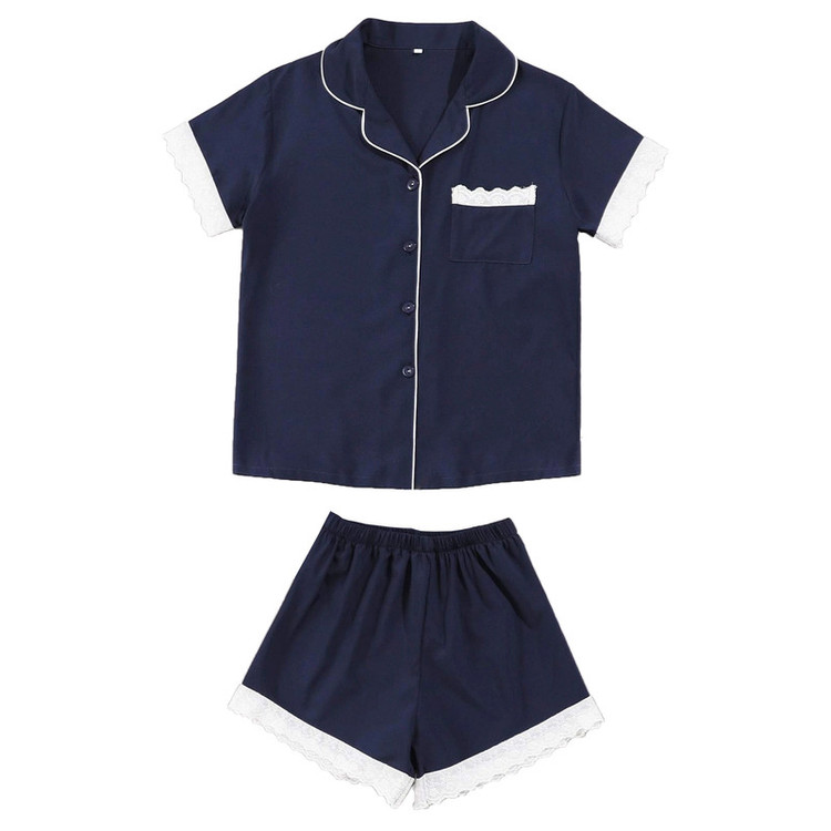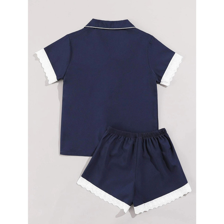 -ست لباس خواب زنانه شامل شومیز قیطون دوزی ساتن و شلوارک ساتن