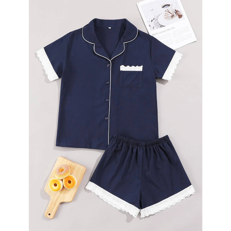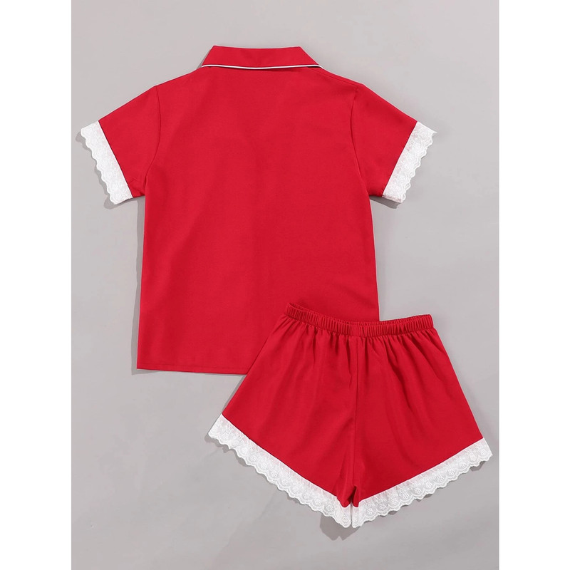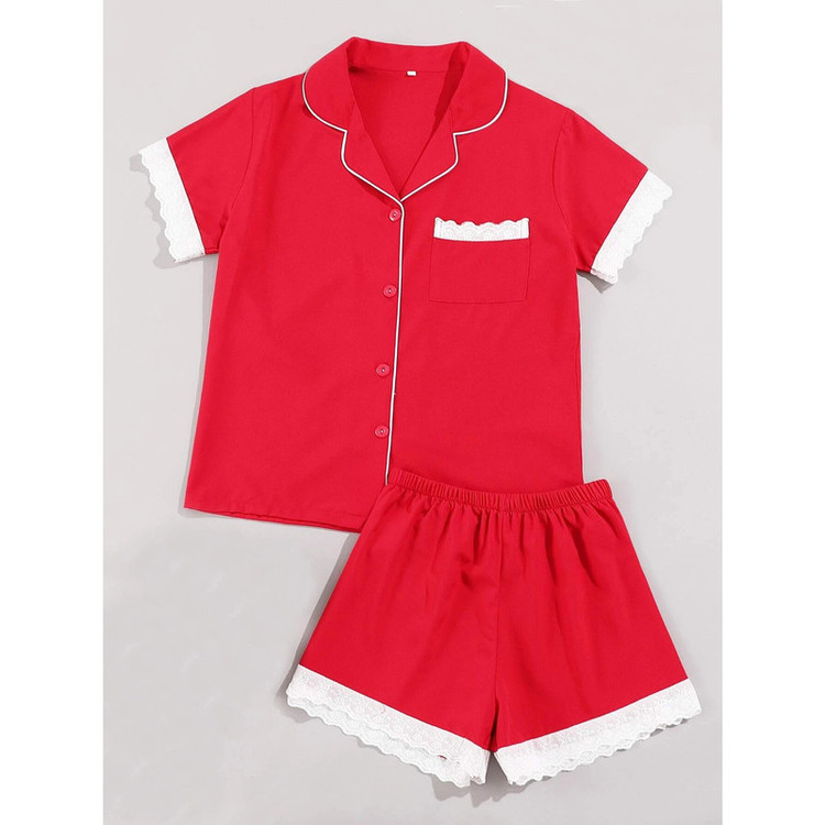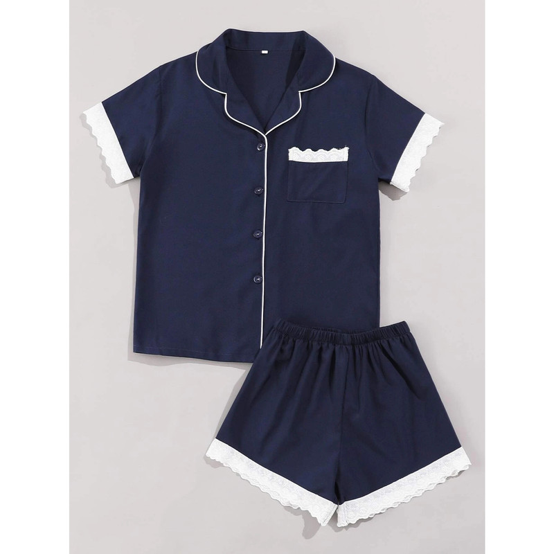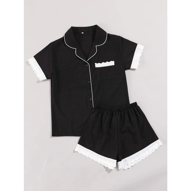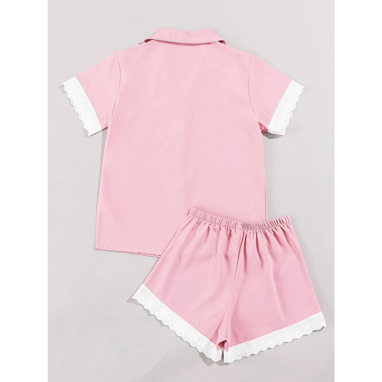 -در قسمتهای آستین جیب و شلوارک با گیپور کره ای تزئیین شده