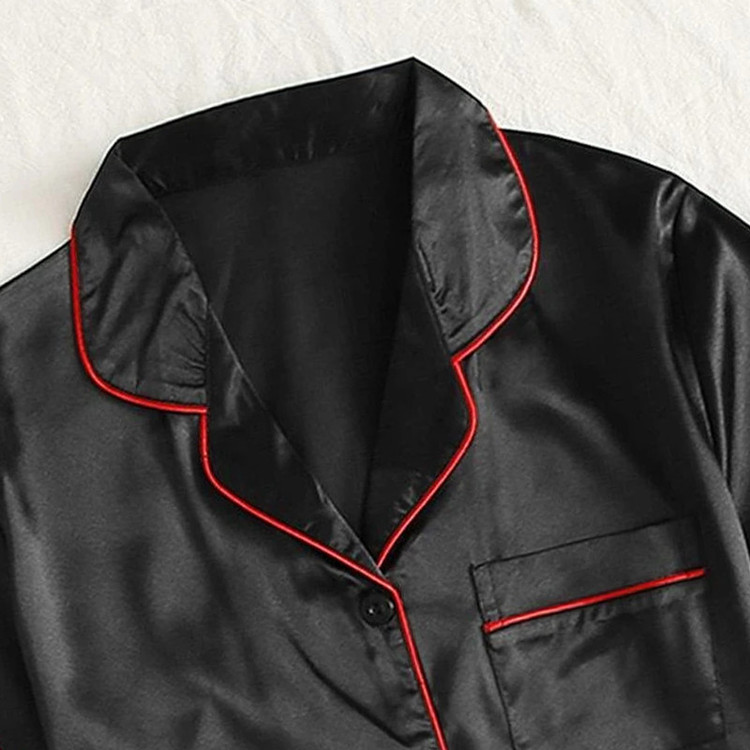 ست لباس خواب زنانه شامل شومیز قیطون دوزی ساتن و شلوار قیطون دوزی ساتن می باشد.