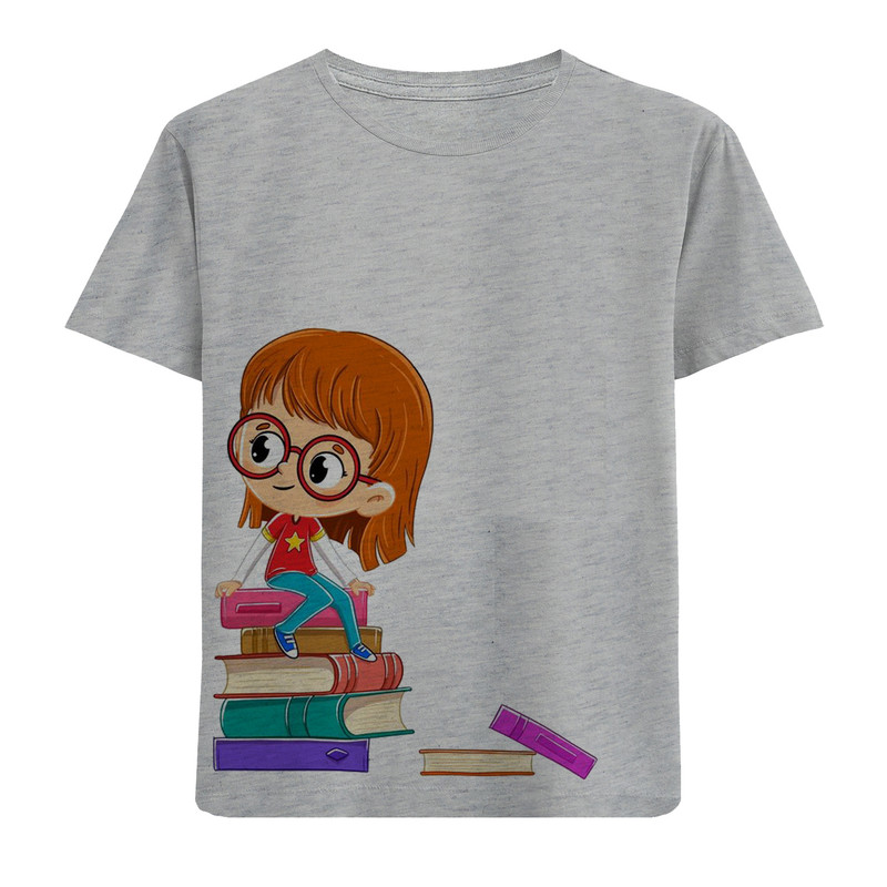 تی شرت دخترانه مدل دختر و کتاب F469