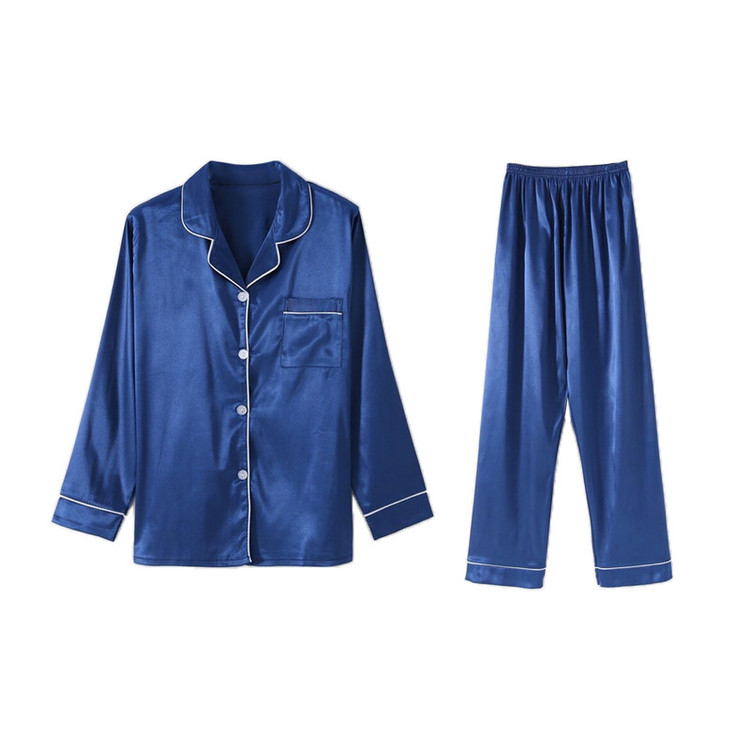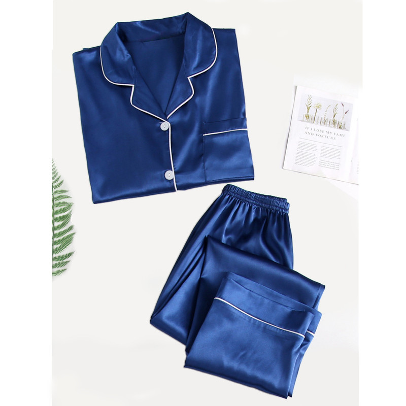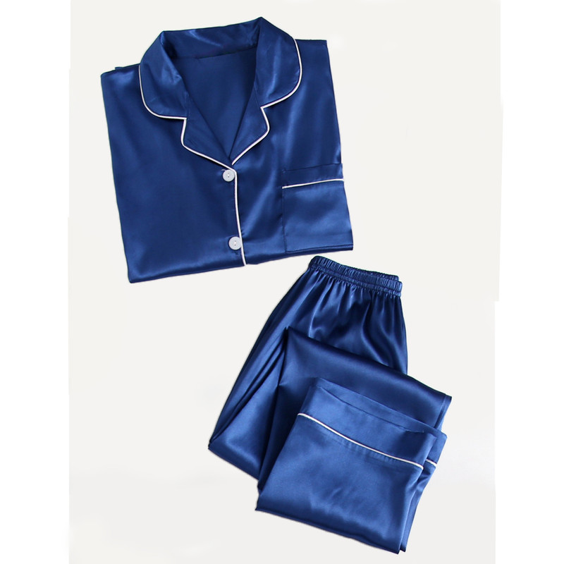 -ست لباس خواب زنانه شامل شومیز قیطون دوزی ساتن و شلوار قیطون دوزی ساتن