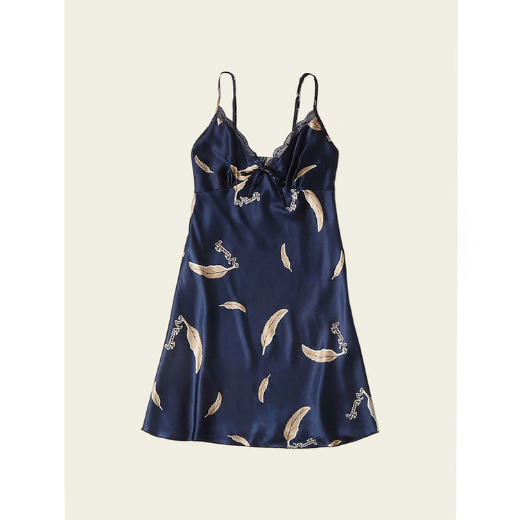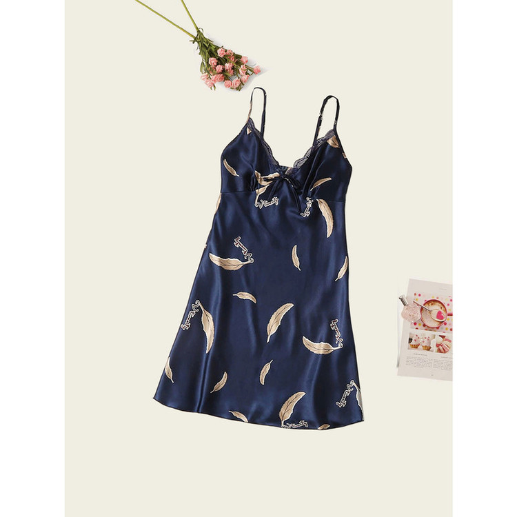 - لباس خواب زنانه شامل پیراهن ساتن آستین حلقه ای یقه هفت