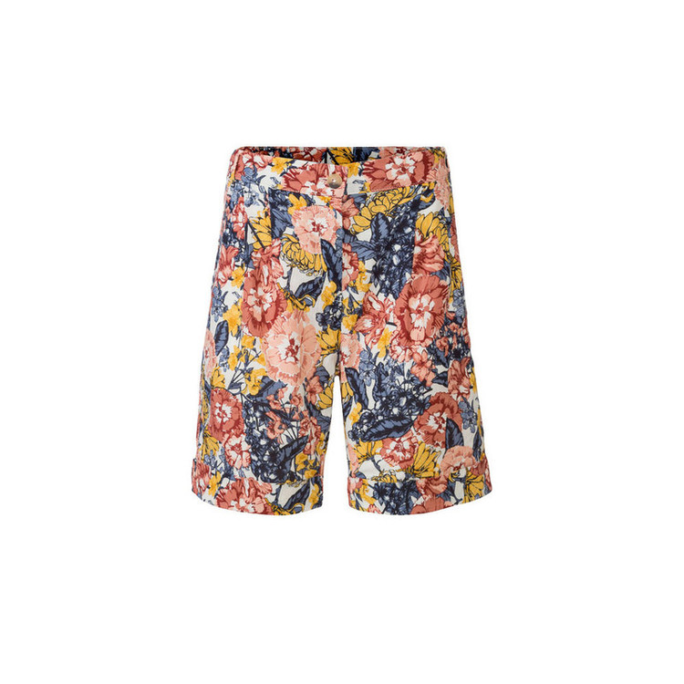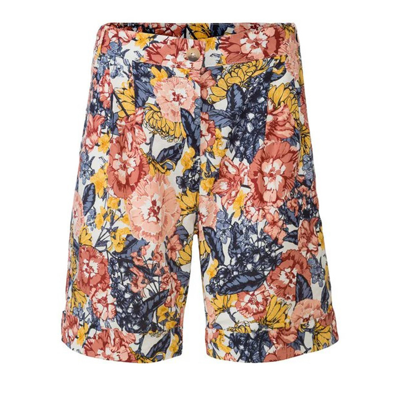 شلوارک طرح داره اسمارا قد کارتا بالای زانو کمر کار دکمه ای داری زیپ داری 4 جیب