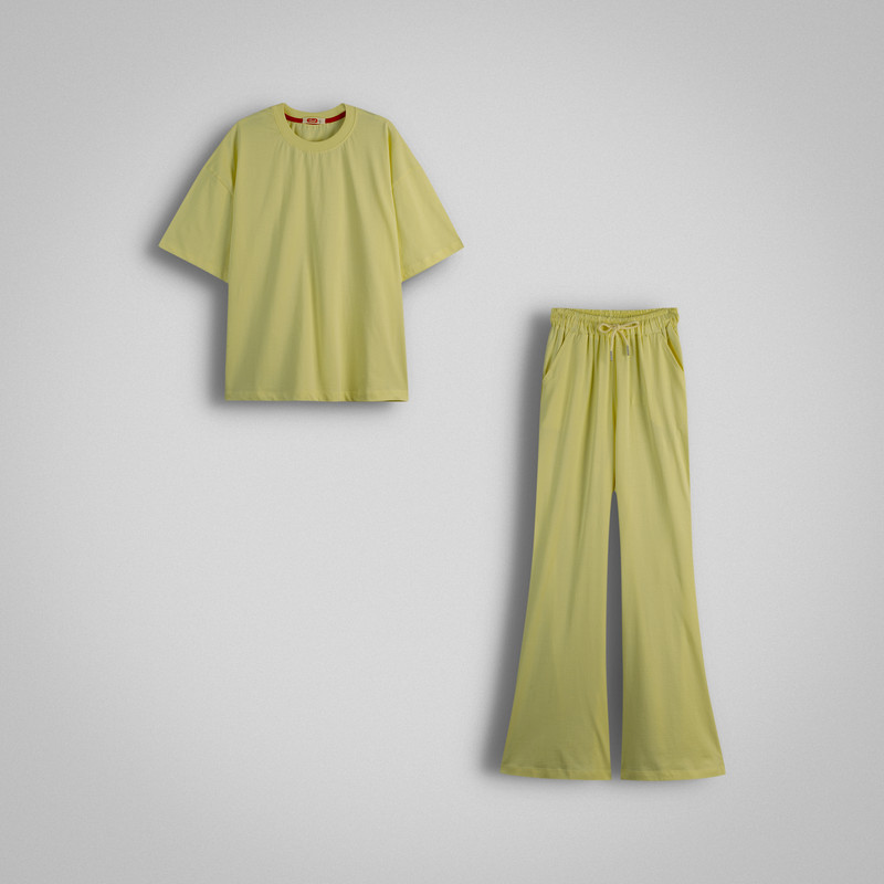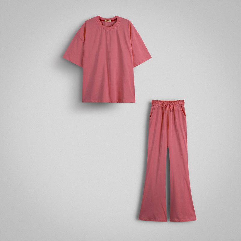 جنسپنبهطرحسادهقدروی باسنمدل یقهگردنوع آستینآستین کوتاهتنخور لباسآزادنوع ست لباس راحتی زنانهتی شرت و شلوار