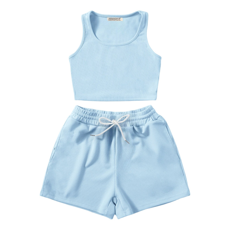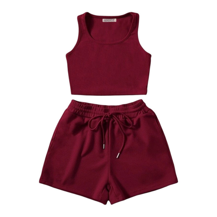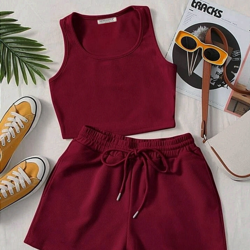 ست کراپ تاپ و شلوارک زنانه آرمادیا مدل کبریتی یقه اسکوپی کد CH16