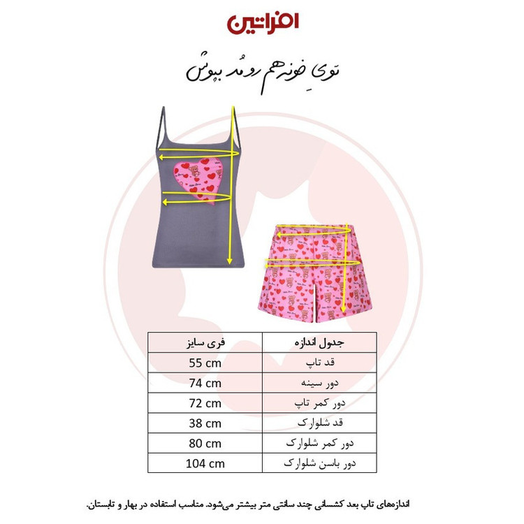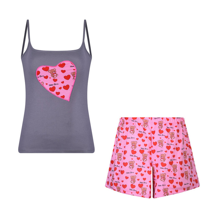 ست تاپ و شلوارک زنانه افراتین مدل خرس و قلب کد 6606